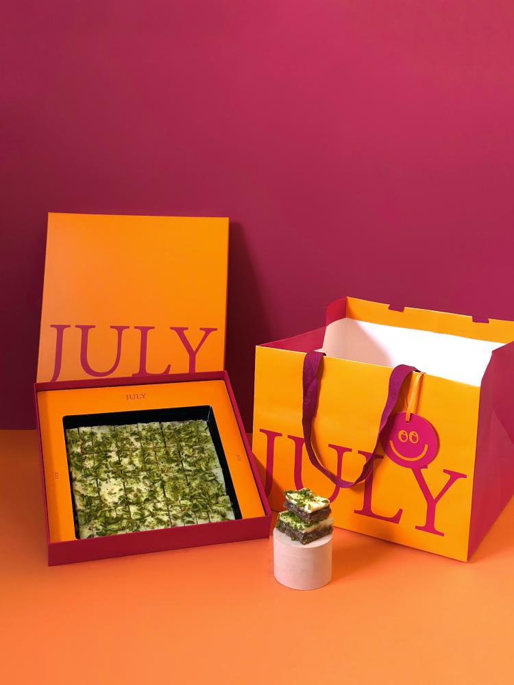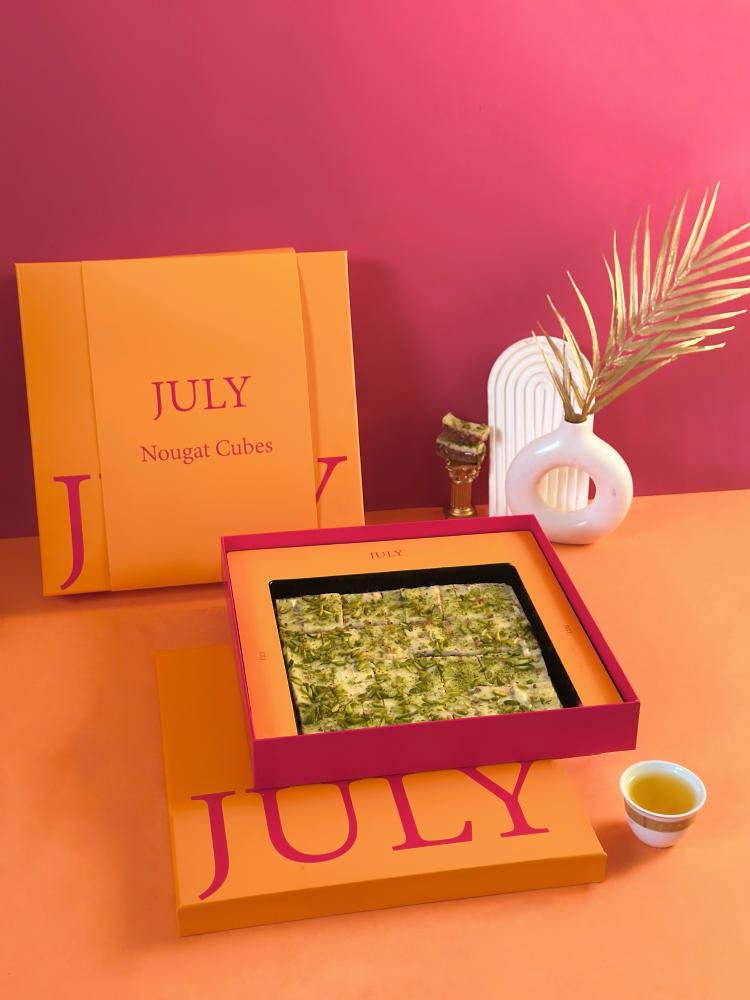 48 قطعة من طبقات البسكوت والنوغا والكراميل مع خلطتنا الخاصة ومغطاة بالفستق